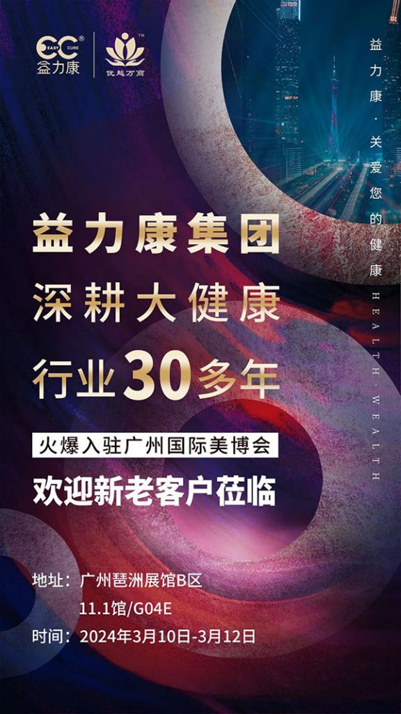 2024年3月10日-12日,第63屆中國(guó)(廣州)國(guó)際美博會(huì)將在廣州進(jìn)出口商品交易會(huì)展館A、B區(qū)舉辦。益力康將參展并推出全新的合作項(xiàng)目,歡迎您蒞臨現(xiàn)場(chǎng)了解洽詢,迎接機(jī)遇,共商未來!